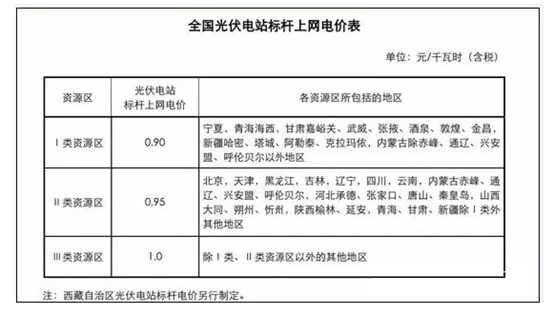 (一)根据各地太阳能资源条件和建设成本,将全国分为三类太阳能资源区,相应制定光伏电站标杆上网电价。各资源区光伏电站标杆上网电价标准见附件。